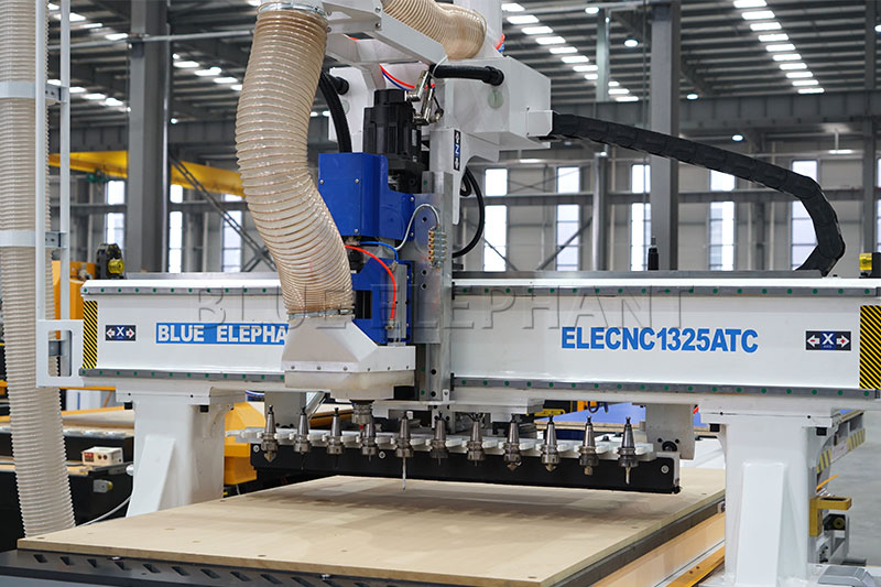 直排12把刀刀庫在龍門下邊,配自動上料平臺和自動下料平臺,節(jié)省換刀及上下料時間,生產(chǎn)效率高。